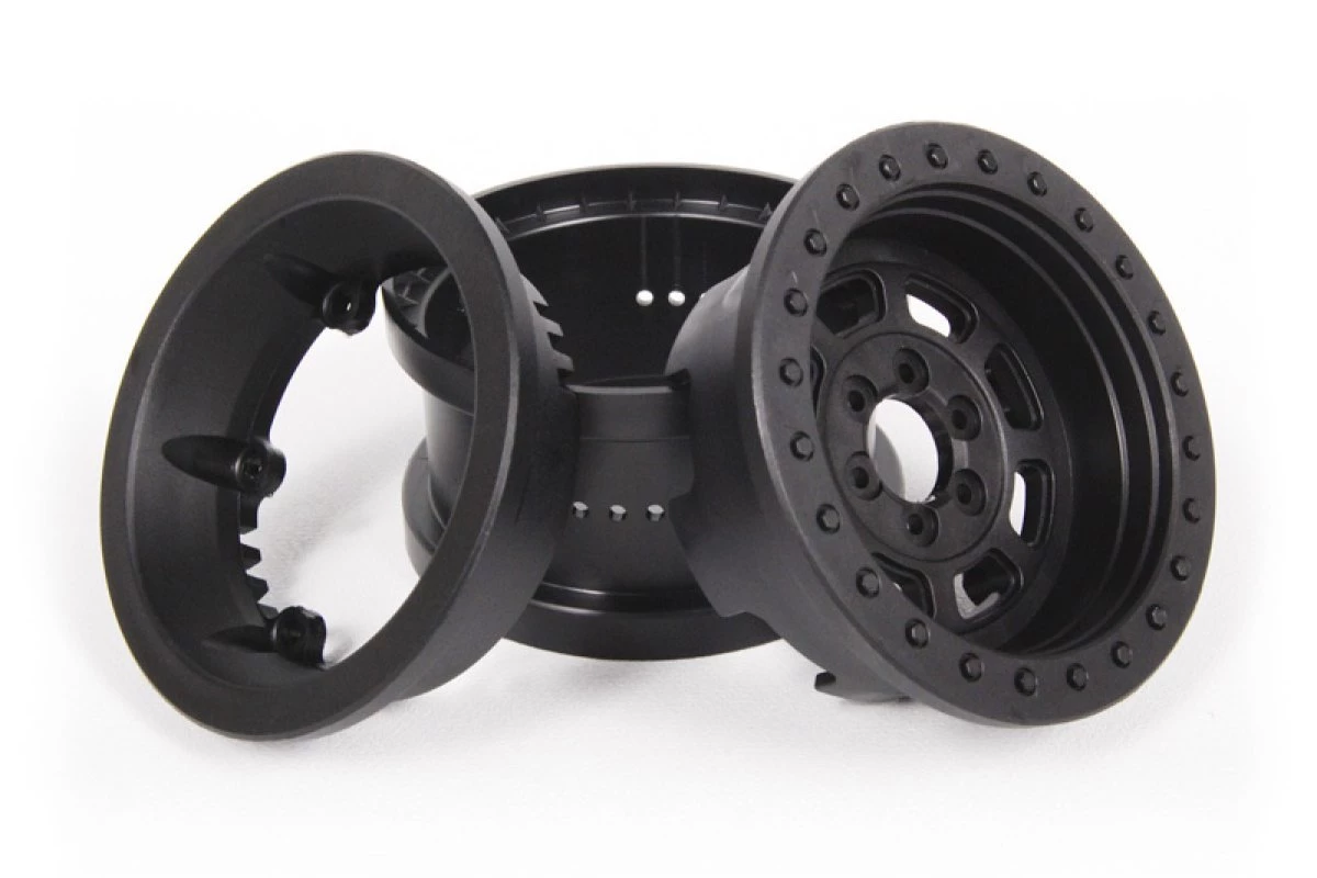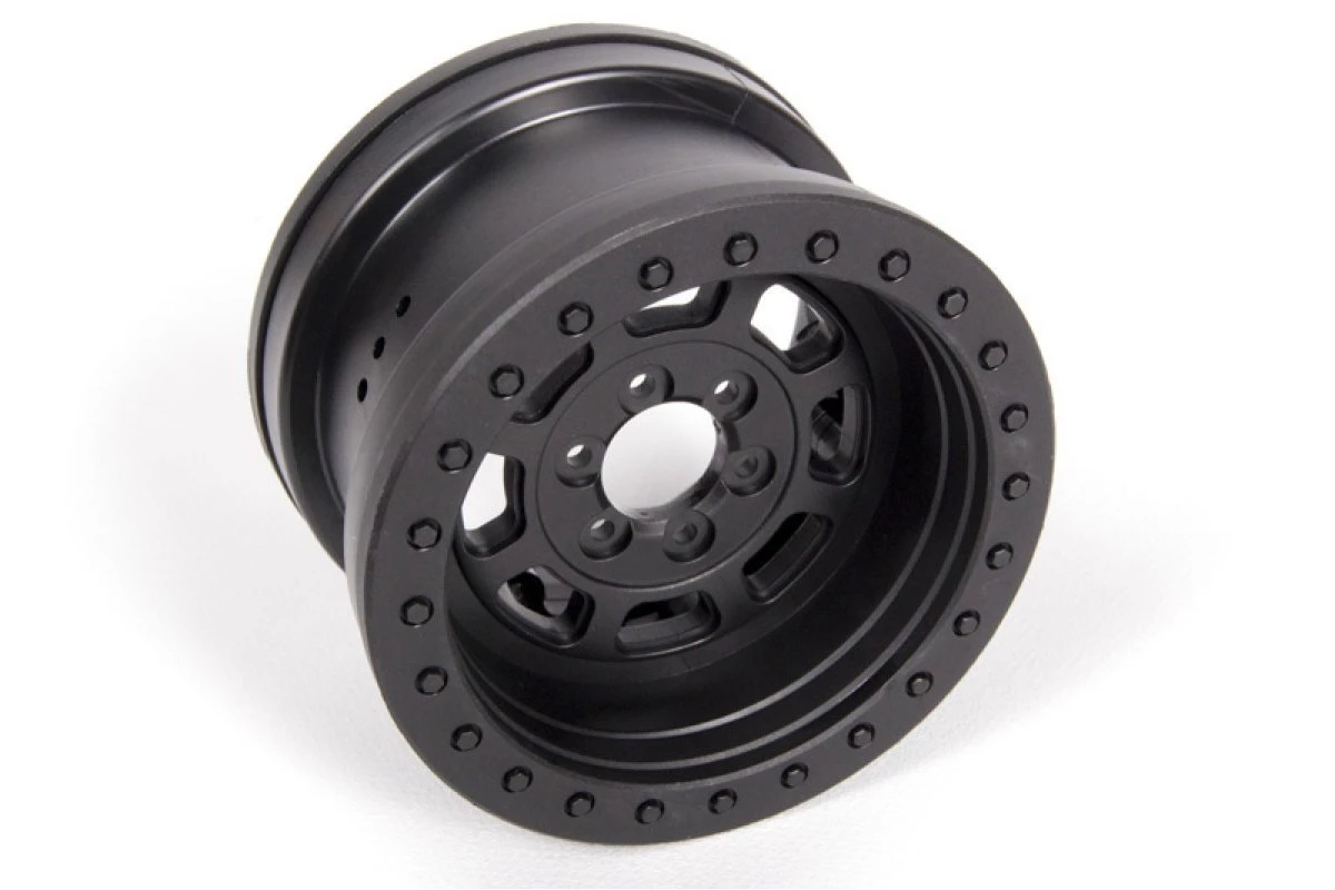 Officially licensed Trail Ready HD Series beadlock wheels dressed in an aggressive all black style are easy to assemble and they work with most 2.2 tires. The hub design allows this wheel to mount to any Wraith, AX10 Ridgecrest or SCX10. Our IFDâ„¢ (Interchangeable Face Design) wheel system makes it easy to dress it up with a new look.
