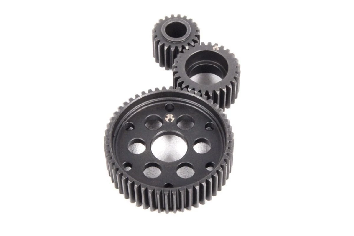 Axial now offers heavy duty transmission gears for the SCX10, AX10 and Wraith. CNC machined steel transmission gears are more durable than the stock plastic gears. Steel gears are also hardened for the ultimate in strength. Perfect for high power applications, and big brushless motors. Rock race your way to the finish line with peace of mind knowing your transmission gears can handle whatever you throw at them, all day long!
