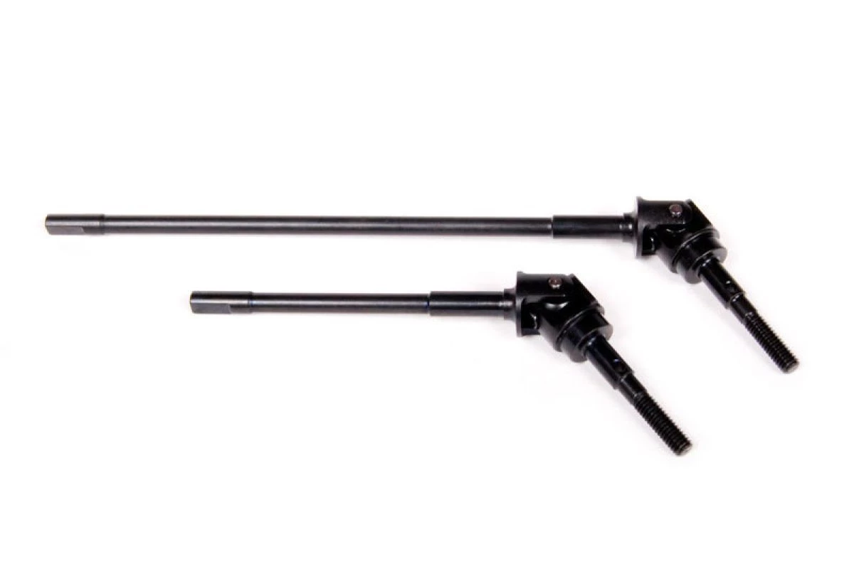 Our universal joint axles increase steering angle to 50 degrees, that’s 60% over the stock dogbone/drive cup setup. Our universals provide smoother action for a higher performing, efficient drivetrain. The universal is oversized; a design you’d see on 1/8 scale vehicles and it’s made of hardened steel so it’s capable of handling extreme power.
