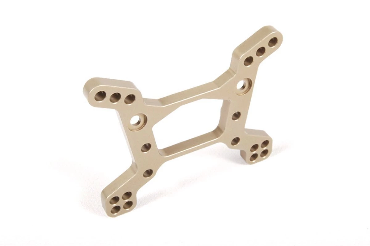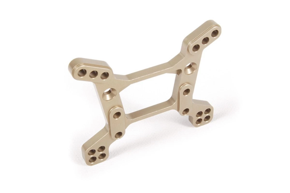 Axial’s CNC machined front shock tower! Upgrade your stock plastic shock tower to this CNC machined tower for rigidity and strength! Shock tower includes multiple mounting holes for upper shock mounts and upper A-arm links for added adjustability.