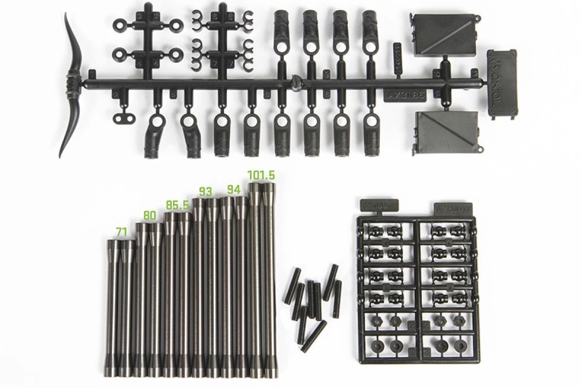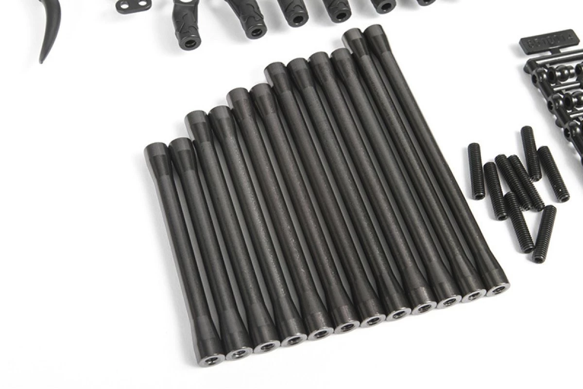 SCX10 II Rear Aluminium Link Set includes everything you’ll need for increasing stiffness and eliminating unwanted flex within the suspension.
