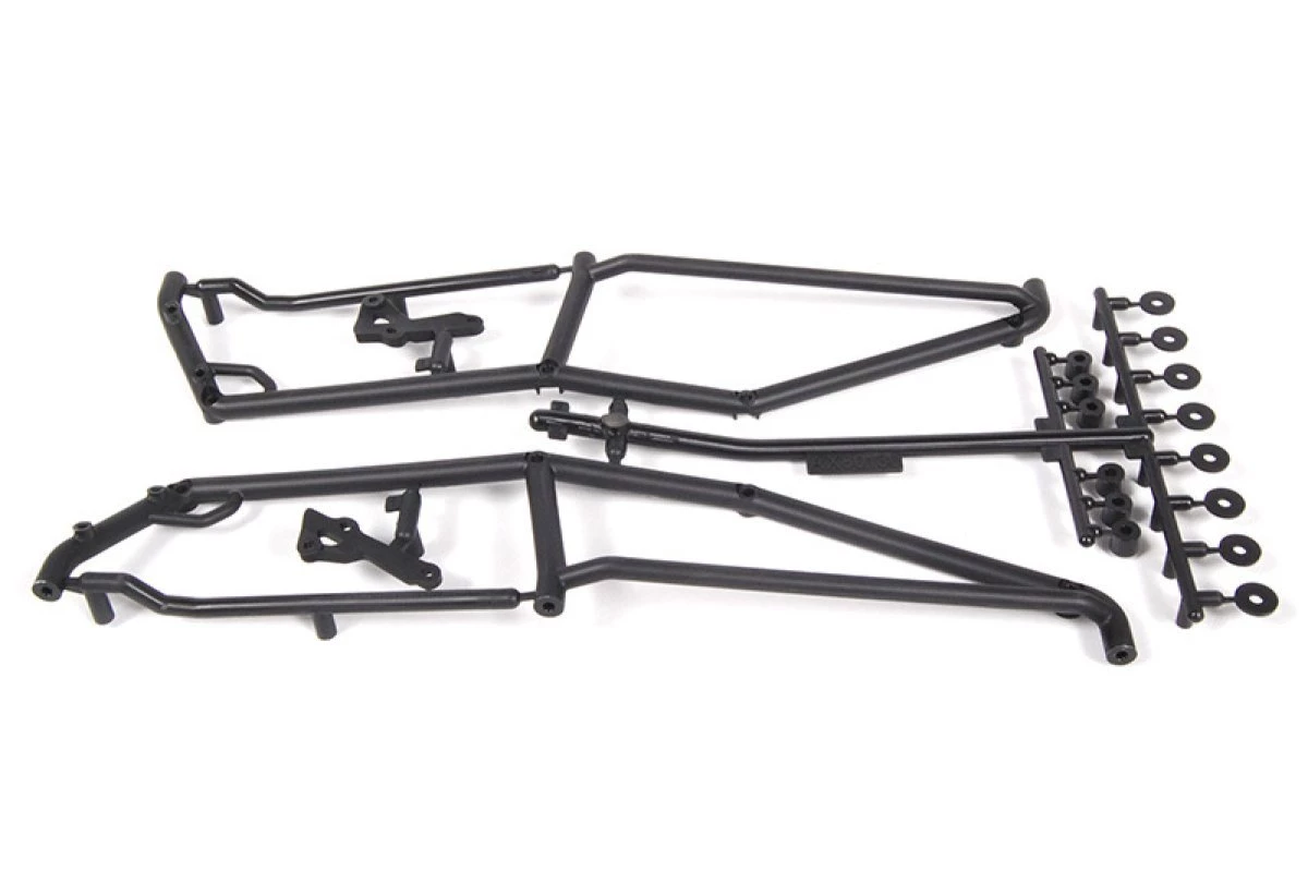 The universal dove-tailed bolt-in cage is made to fit bodies modified for maximum clearance. This cage is compatible with AX04038 Jeep® Wrangler Rock Racer Body and AX04039 AX10 Deadbolt Body.