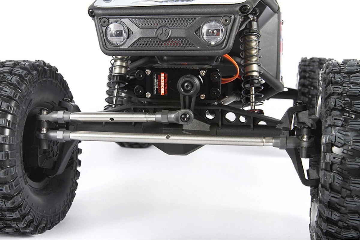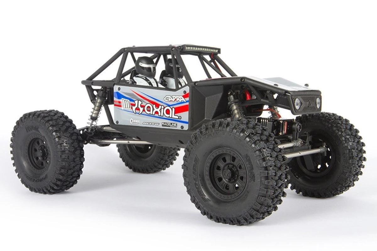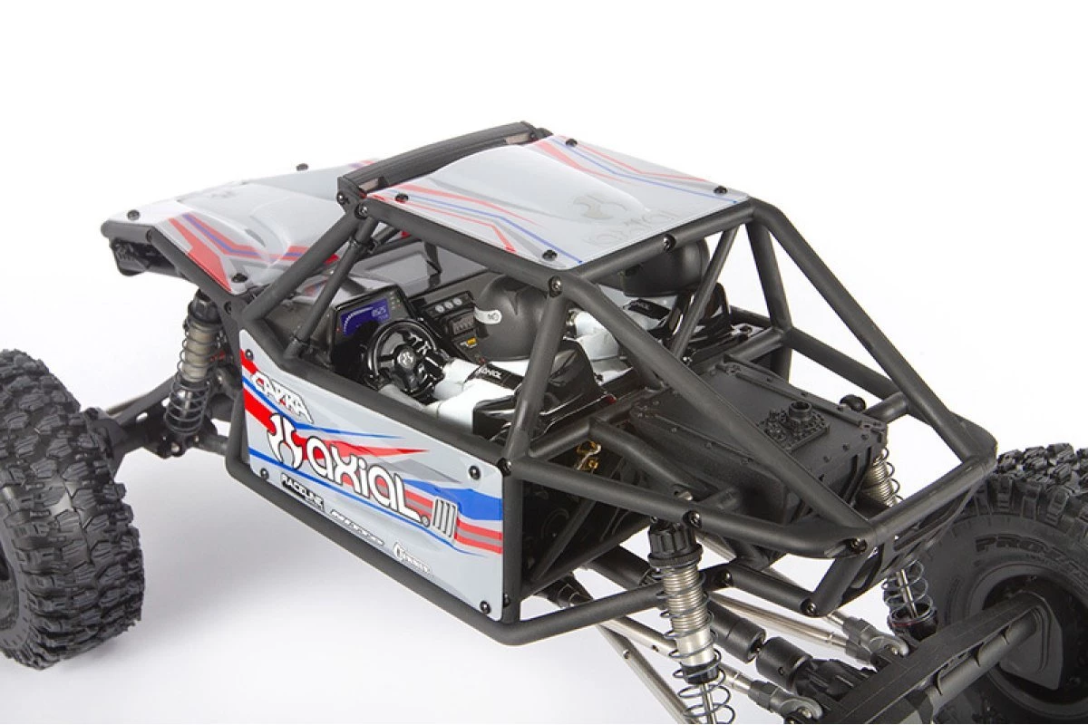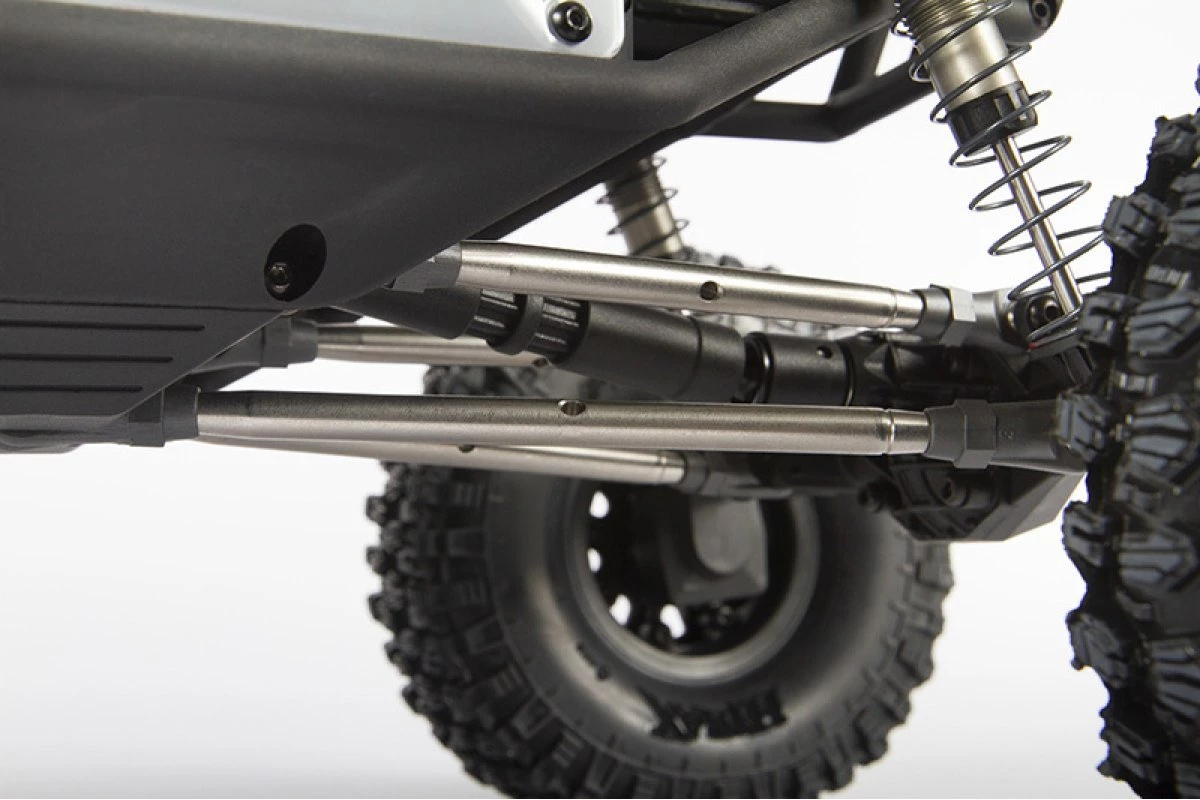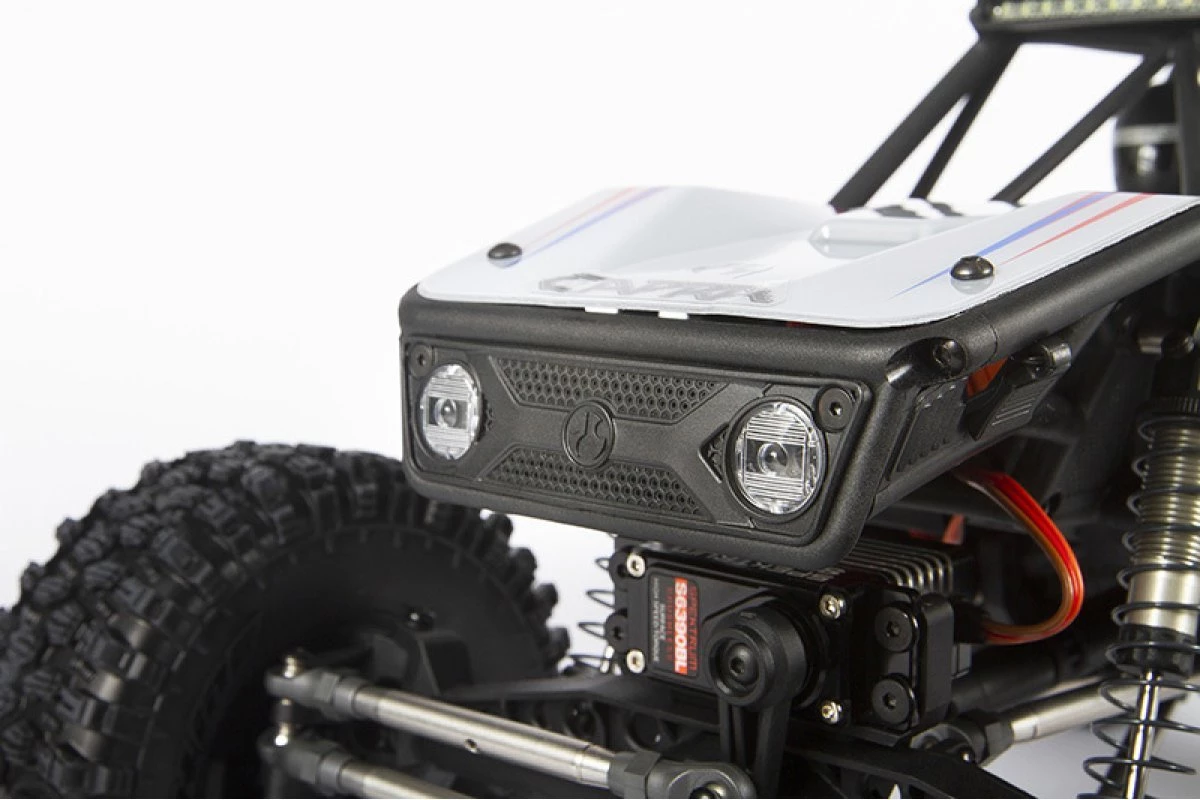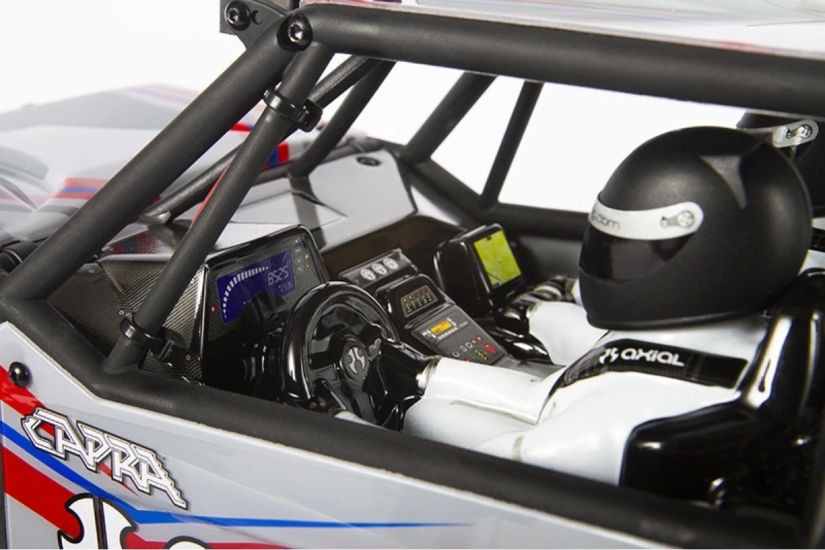 The all new Axial Capra 1.9 Unlimited Trail Buggy Builder’s Kit is a “new from the ground up” design that any advanced RC enthusiast eager for cutting-edge crawling will appreciate. Its Currie F9 Portal Axles provide extra ground clearance at the diff pumpkin for the best crawling performance. With the included DIG transmission, you can also switch on the fly between 4WD and FWD directly from your 3-channel transmitter — locking the rear axle whenever you need the tighter turning radius of front drive power. The Capra features a realistic tube chassis design and metal gears everywhere, from the center transmission to the lockers and portal axles. It rides on licensed Raceline 3-piece molded beadlock wheels that can be fitted with whatever 1.9 tires you prefer. For pioneering performance in an RC trail buggy kit, choose the Axial Capra.
