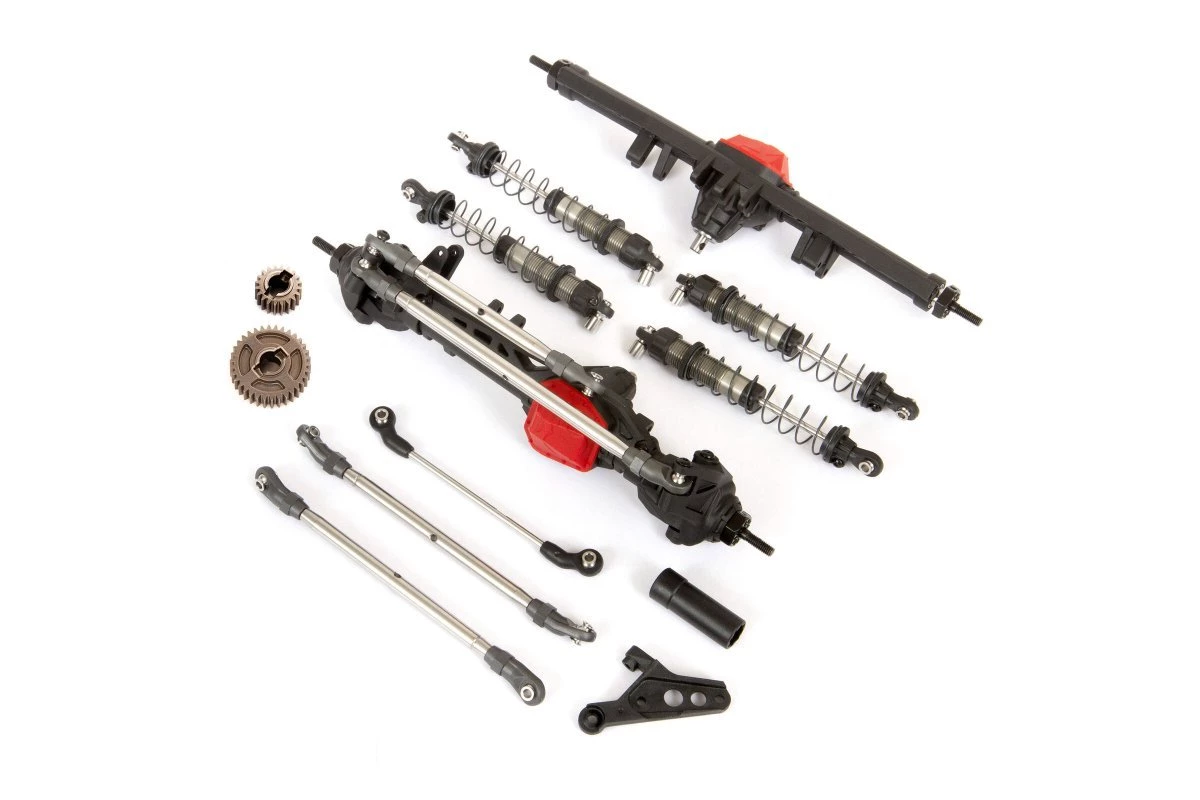 All of the parts required for the SCX10™ III standard axle conversion are included — front axle, rear axle, links, and shocks. To make installation easy, the axles, links, and shocks come factory-assembled and ready to bolt in. Axial® also includes oil for the shocks.