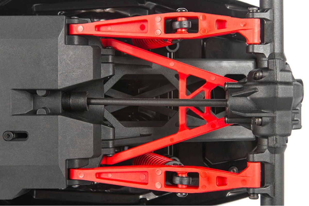 Before we unveiled the Yeti, the only place to find an independent suspension with floating solid rear axle was in full-size off-road vehicles. Axial carried its advantages over into RC rock racers and crawlers. The suspension design give the Yeti Jr responsive handling, increased clearance, and improved stability at high speeds. Its included 380-size 37T motor adds the perfect amount of speed and torque. When that muscle meets the tread of the Maxxis® Bighorn 2.0 radial tires, you’ve got all the traction you need for fast, smooth rides over virtually any surface.