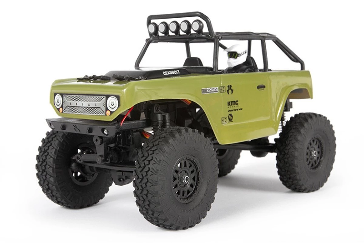The SCX24â„¢ Deadboltâ„¢ 4WD is the first Axial® off-roader in 1/24 scale. At less than 8″ long, it’s the perfect rig to take along on your hiking, camping, and other outdoor and indoor adventures — offering factory-assembled ease, scale looks, and confident handling on any trail.